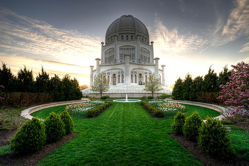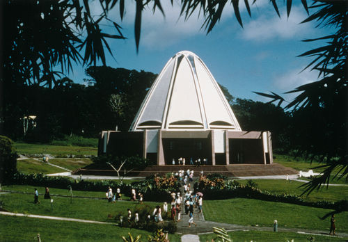 In the photo gallery that follows, the first 2 photos are from our world headquarters in Haifa, Israel. After that we are sharing photos from every continent in the world, each of which has a "House of Worship". Open to all visitors, they are known for their spiritual as well as architectural qualities. Here is a photo from each of them.